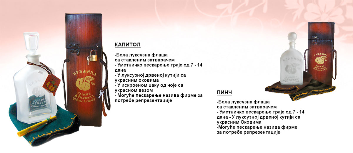 - Обзиром да смо после дугогодишњих проба и стрпљивог рада дошли до врхунског квалитета ево сада смо се и одважили да вам је понудимо. то је ракија чијом ће снагом бити задовољан мушки део света, а укусом цео женски свет.